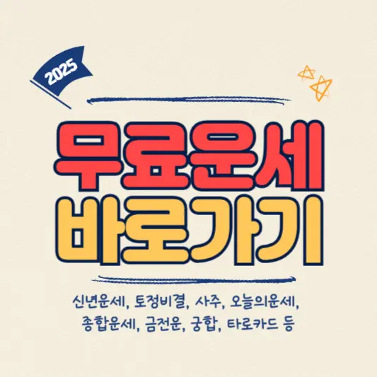 이제부터 소개해 드릴 사이트를 통해 무료로 토정비결, 평생사주, 금전사주, 자녀운세, 직장운세, 궁합, 운명의 상대, 타로카드, 꿈해몽 등 여러 운세를 확인해 보세요.