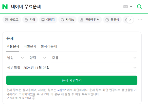 간단하게 오늘의 운세를 확인하고 싶은 경우 네이버 무료운세를 사용할 수 있습니다.
